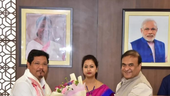 मेघालय के सीएम कोनराड संगमा के साथ असम के सीएम हिमंत बिस्वा सरमा। (ट्विटर)