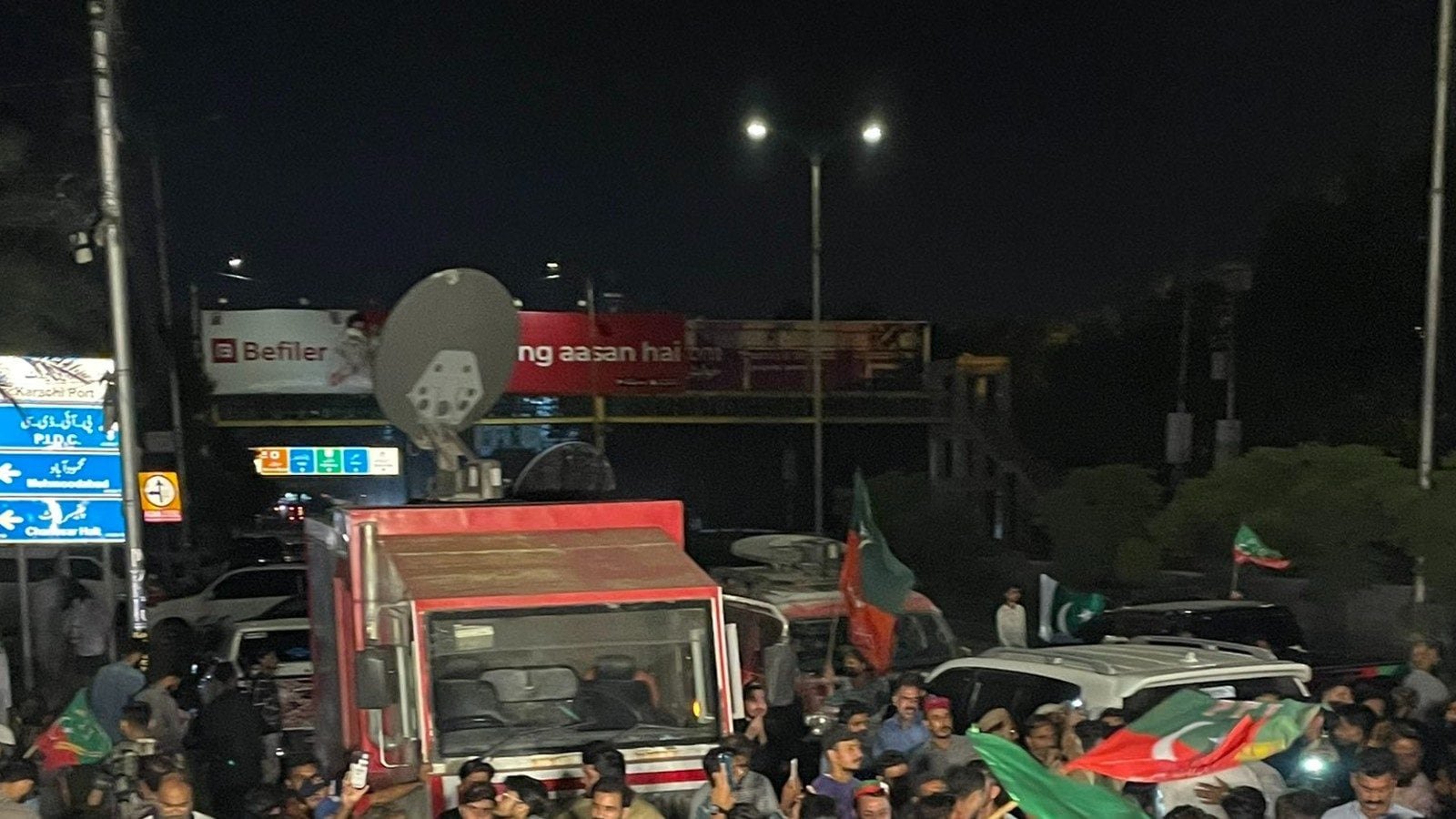 पाकिस्तान तहरीक-ए-इंसाफ या पीटीआई के ट्विटर अकाउंट पर पोस्ट किए गए वीडियो में सैकड़ों लोगों को खान के समर्थन में मार्च करते दिखाया गया है। प्रदर्शनकारियों को “इमरान खान हमारी लाल रेखा है … इसे पार करने के बारे में मत सोचो” का नारा लगाते हुए देखा गया। पुलिस जो घटनास्थल पर मौजूद थे, लेकिन उन्होंने दावा किया कि वे पूर्व नेता को गिरफ्तार करने के लिए नहीं, बल्कि कानून और व्यवस्था की स्थिति बनाए रखने के लिए थे।