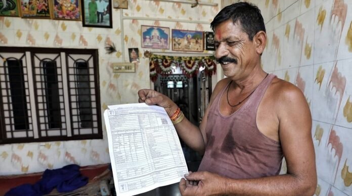 पैनल लगाने से पहले काशीबा सोलंकी को अपनी छत को मजबूत करने के लिए पैसे की जरूरत है। निर्मल हरिंद्रन
