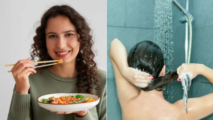 IBN24 Desk : Is it okay to bathe after eating: न्यूट्रिशनिस्ट ने खाने के तुरंत बाद नहाने के नुकसान बताए हैं, आइए जानते हैं इनके बारे में, साथ ही जानेंगे खाने के कितनी देर बाद नहाना सही होता है.