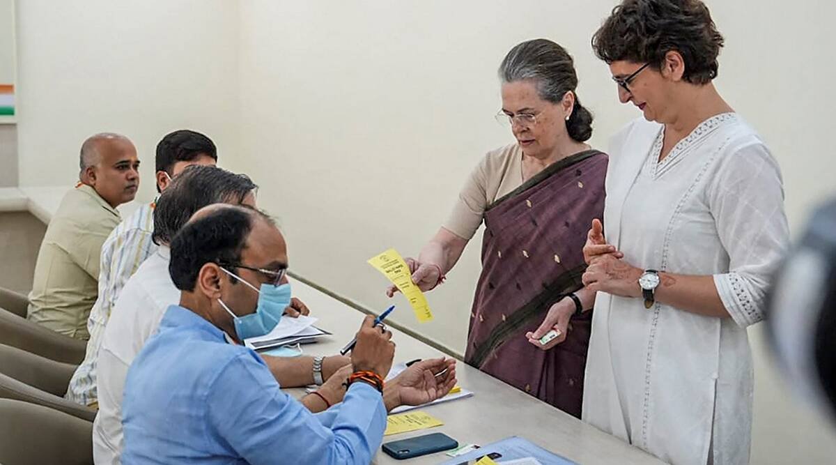 कांग्रेस की अंतरिम अध्यक्ष सोनिया गांधी ने सोमवार को नई दिल्ली में अखिल भारतीय कांग्रेस कमेटी (एआईसीसी) कार्यालय में पार्टी के नए अध्यक्ष और उनके उत्तराधिकारी का चुनाव करने के लिए अपना वोट डाला। पार्टी महासचिव और उनकी बेटी प्रियंका गांधी वाड्रा गांधी के साथ थीं।
