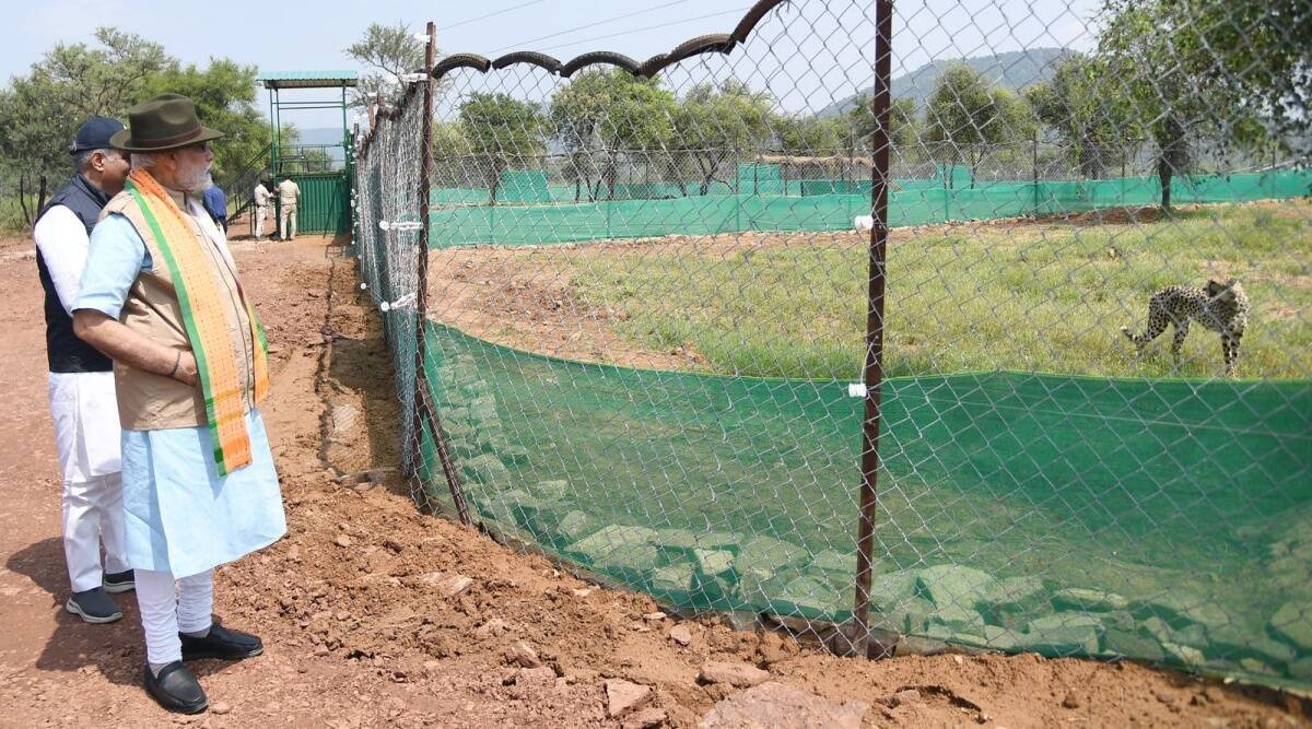 शनिवार की सुबह 11.25 बजे, आठ अफ्रीकी चीतों के भारत में उतरने के कुछ घंटे बाद, प्रधान मंत्री नरेंद्र मोदी दो क्रेटों के ऊपर एक मंच पर खड़े हुए, और दो चीतों को मध्य प्रदेश के कुनो नेशनल पार्क के संगरोध बाड़े में छोड़ते हुए उनके दरवाजे खोले। पीएम मोदी के साथ मध्य प्रदेश के मुख्यमंत्री शिवराज सिंह चौहान और केंद्रीय पर्यावरण मंत्री भूपेंद्र यादव भी थे, क्योंकि उन्होंने व्यक्तिगत रूप से बड़ी बिल्लियों की तस्वीरें लीं, जिन्हें 70 साल बाद देश में फिर से पेश किया गया है।