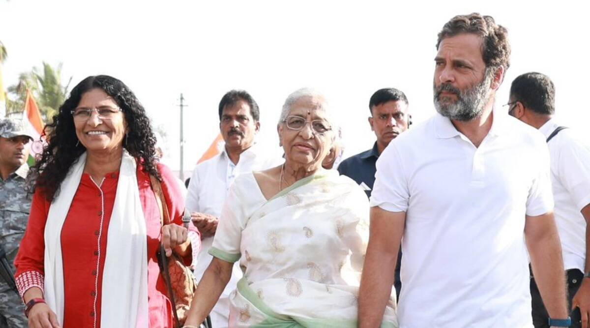 राहुल ने इंदिरा से कार में मार्च का पालन करने का अनुरोध करने से पहले दोनों के साथ हाथ मिलाया। राहुल एक फिल्म निर्माता कविता के साथ मार्च जारी रखने से पहले उन्हें वापस ले गए, जो कांग्रेस नेता के साथ लगभग तीन किलोमीटर तक चलीं।