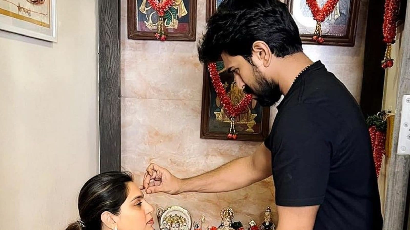 अनमोल तस्वीर में, आरआरआर अभिनेता को आवेदन करते देखा जा सकता है टीका उपासना के माथे पर, अनुष्ठान के हिस्से के रूप में, जबकि कविता को उसकी गोद में आराम से ले जाया गया था। पर्पल सूट और पर्पल रिंकल लॉन्ग स्कर्ट में उपासना बेहद खूबसूरत लग रही थीं। उन्होंने इसे सफेद दुपट्टे के साथ पेयर किया और अपने बालों को पोनीटेल में बांधा हुआ था। वहीं राम चरण ने ब्लैक टी-शर्ट पहनी थी और इसे व्हाइट पजामे के साथ पेयर किया था। शुभ दिन के लिए पृष्ठभूमि में मूर्तियों को भी फूलों की माला से सजाया गया था। उपासना ने कैप्शन में लिखा, ‘क्वारंटाइन पूजा। कई इमोटिकॉन्स के साथ हैप्पी जन्माष्टमी और वर लक्ष्मी व्रत”।