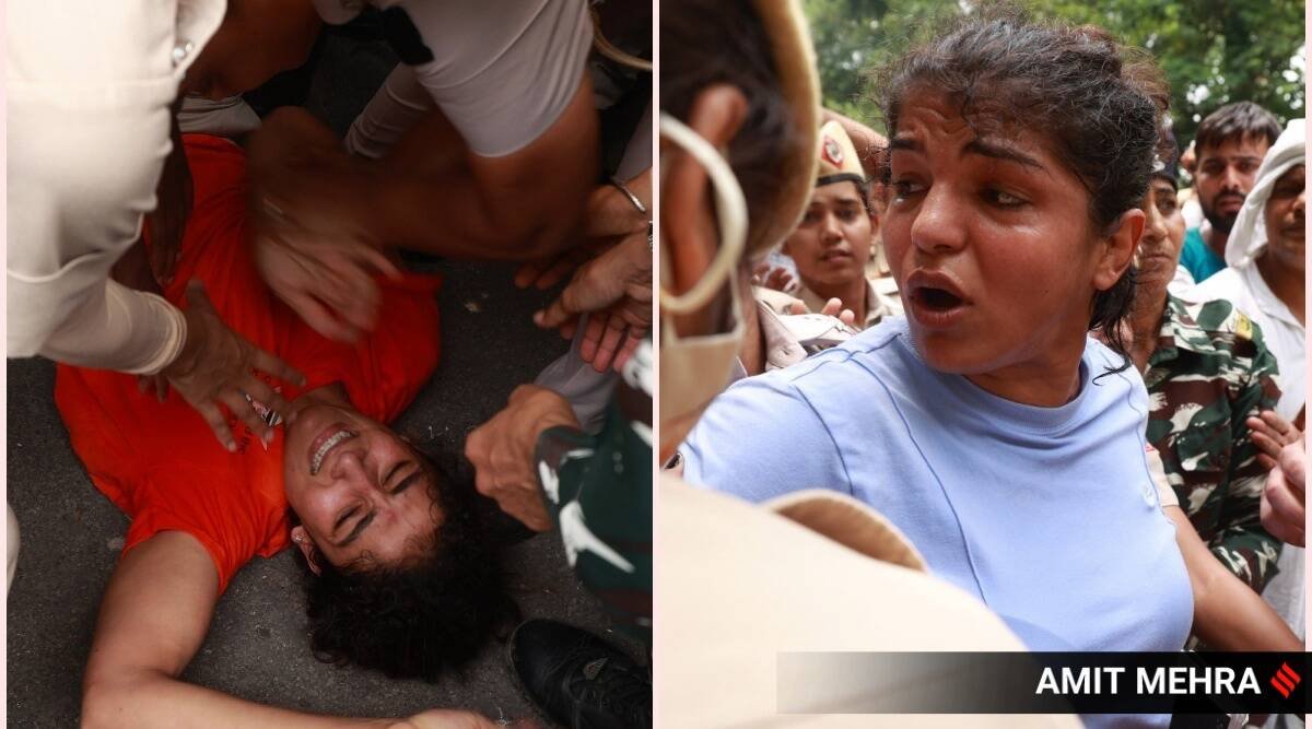 जैसे ही राष्ट्रीय राजधानी में नई संसद के उद्घाटन की तस्वीरें टेलीविजन और सोशल मीडिया पर आईं, कार्यक्रम स्थल से बमुश्किल 2 किमी दूर, विनेश फोगट, साक्षी मलिक और बजरंग पुनिया सहित पहलवानों ने विरोध किया। दिल्ली पुलिस ने हिरासत में लिया था जैसा कि उन्होंने अनावरण समारोह की ओर बढ़ने की कोशिश की, जहां दिन के लिए एक महिला महापंचायत की योजना बनाई गई थी।