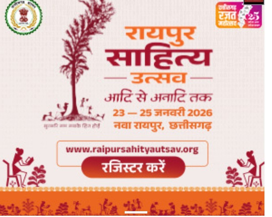 छत्तीसगढ़ की धरा पर साहित्य, संस्कृति और विचारों का संगम:23 से 25 जनवरी तक आयोजित होगा ‘रायपुर साहित्य उत्सव–2026’