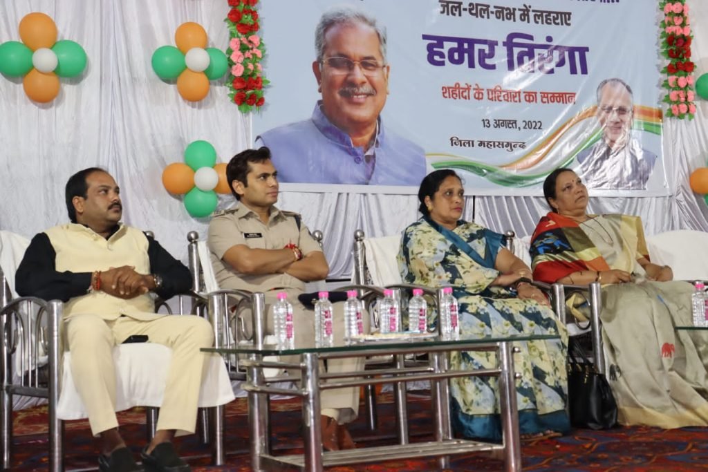 IBN24 Desk : महासमुंद (छत्तीसगढ़) आज आजादी के अमृत महोत्सव की 75वी वर्षगांठ पर आज दिनांक 13-08-2022 को शाम 5:30 बजे श्यामा प्रसाद मुखर्जी सभागार टाउन हॉल महासमुंद में वीर शहीदो के परिवार का सम्मान में कार्यक्रम आयोजित किया गया जिसमे जिले में निवासरत वीर शहीदों के परिवार उक्त कार्यक्रम में उपस्थित हुए।