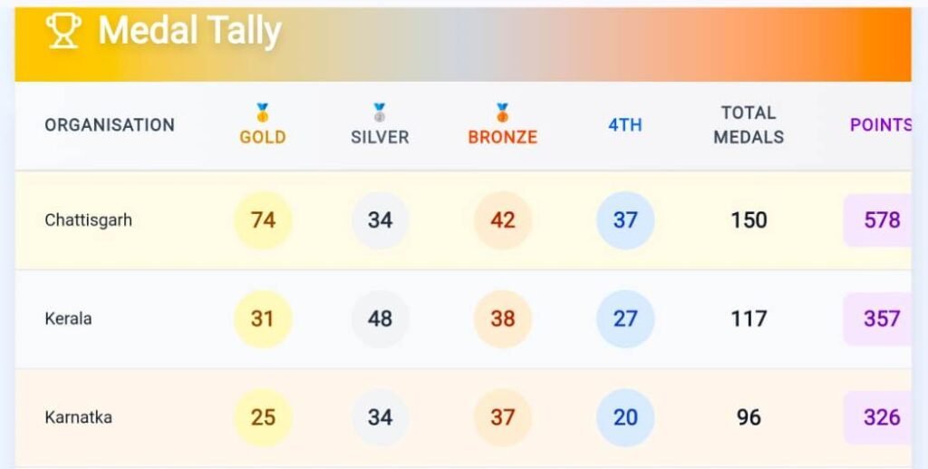 IBN24 Desk : रायपुर (छत्तीसगढ़) छत्तीसगढ़ ने अखिल भारतीय वन खेल प्रतियोगिता में एक बार फिर इतिहास रच दिया है। देहरादून में हुई 28वीं अखिल भारतीय वन खेल प्रतियोगिता में शानदार प्रदर्शन करते हुए मेडल तालिका में पहला स्थान हासिल किया है। इस प्रतियोगिता में छत्तीसगढ़ ने 150 मेडल और 578 अंक के साथ लगातार दूसरे वर्ष चैम्पियनशिप अपने नाम की है। मुख्यमंत्री श्री विष्णु देव साय और वन मंत्री श्री केदार कश्यप ने प्रतियोगिता में उत्कृष्ट प्रदर्शन करने वाले सभी खिलाड़ियों और टीमों को बधाई देते हुए उन्हें भविष्य में भी ऐसे ही उत्कृष्ट प्रदर्शन करने के लिए बधाई और शुभकामनाएँ दी है।
