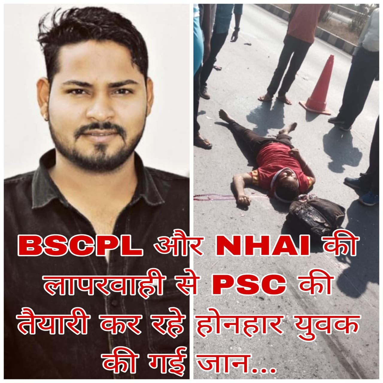 BSCPL और NHAI  की लापरवाही से पीएससी की तैयारी कर रहे एक होनहार नौजवान युवक की गयी जान, अब परिजन BSCPL और NHAI के खिलाफ कराएंगे FIR …