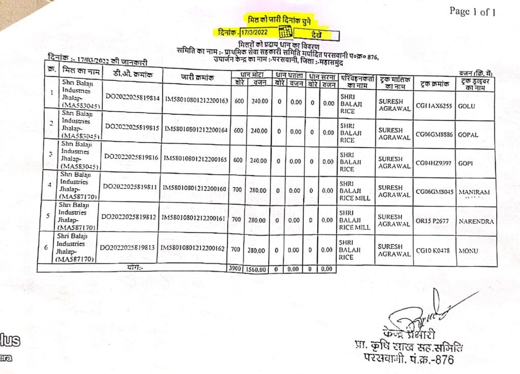श्रीबालाजी राइस मिल में गड़बड़ी का ये कोई पहला मामला नहीं है इससे पहले भी धान खरीदी वर्ष 2021-22 धान खरीदी केंद्र परसवानी से कस्टम मिलिंग के लिए कई ट्रक धान का उठाव श्रीबालाजी राइस मिल द्वारा किया जाना बताया गया था जबकि धान खरीदी केंद्र परसवानी से धान आने के कोई भी प्रमाण न तो राईस मिल मालिक दे पाए और न ही जिला प्रशासन के जांच अधिकारी दे पाए, आज भी मामला जाँच में है।