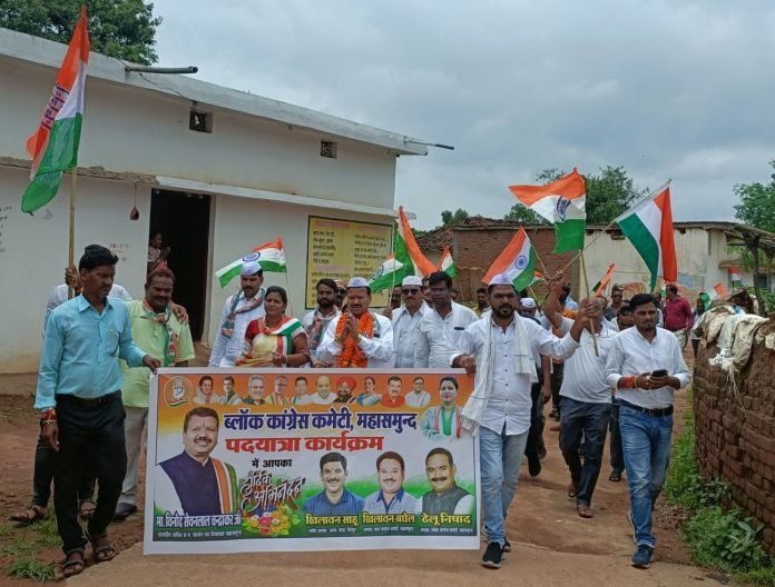 IBN24 Desk : महासमुंद (छत्तीसगढ़) भारत की आजादी की 75वीं वर्शगांठ महोत्सव के अवसर पर आयोजित विधानसभा स्तरीय गौरव यात्रा के तहत आज शुक्रवार को ग्राम पंचायत झालखम्हरिया से पदयात्रा की शुरूआत हुई। संसदीय सचिव व विधायक विनोद सेवनलाल चंद्राकर के नेतृत्व में निकली पदयात्रा के दौरान कांग्रेसजनों ने केंद्र सरकार के खिलाफ जमकर नारेबाजी की। वहीं गौरव यात्रा का जगह-जगह स्वागत किया गया।