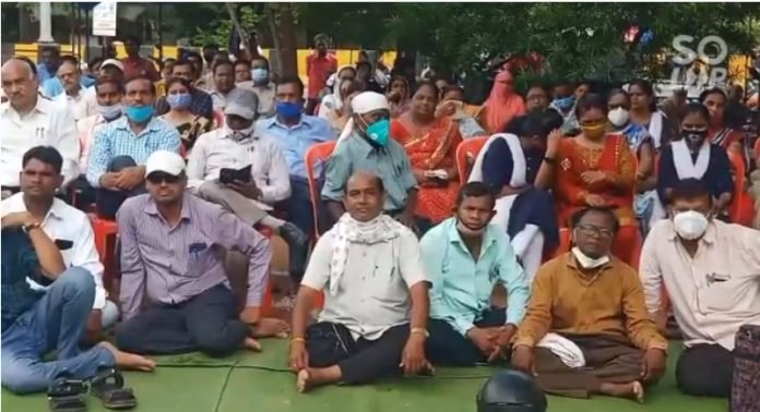 महासमुंद के लोहिया चौक में कर्मचारी अधिकारी फेडरेशन द्वारा 25 जुलाई से 29 जुलाई तक अपनी 2 सूत्रीय मांग को लेकर निश्चितकालीन हड़ताल पर।
