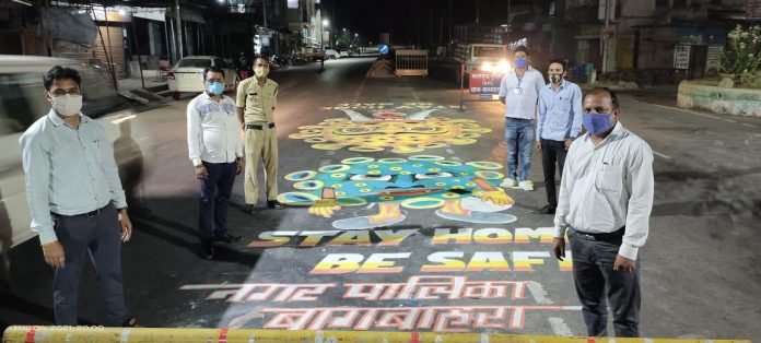 महासमुंद (छत्तीसगढ़) महासमुंद ज़िले में विभिन्न प्रचार माध्यमों स्थानीय गीत संगीत दिवार लेखन आदि के ज़रिए नगरीय एवं ग्रामीण इलाक़ों में कोरोना के प्रति जागरूकता का संदेश दिया जा रहा है । आज ज़िले के बागबाहरा विकासखंड मुख्यालय में मुख्य सड़क किनारे संदेश देने वाली रंगोली बनाकर ज़रूरी कामकाज से आने-जाने वाले लोगों को कोरोना के प्रति जागृत किया गया ।