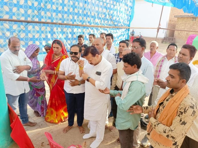 ग्राम पंचायत भावा व सराईपाली में जल जीवन मिशन के तहत पानी टंकी निर्माण व पाइपलाइन विस्तारीकरण कार्य के लिए भूमिपूजन कार्यक्रम आयोजित था। कार्यक्रम के मुख्य अतिथि संसदीय सचिव विनोद सेवनलाल चंद्राकर थे। कार्यक्रम की अध्यक्षता जिला पंचायत उपाध्यक्ष लक्ष्मण पटेल ने की। विशेष अतिथि के रूप में जनपद सदस्य घांसु दीवान, खिलावन साहू, दारा साहू, हेमन्त डड़सेना, दिलीप चंद्राकर, आलोक नायक, डागा साहू, खोम सिन्हा, नरेश अग्रवाल, रमन सिंग ठाकुर, पोखन चंद्राकर, यादराम आदि मौजूद थे। संसदीय सचिव श्री चंद्राकर ने ग्राम भावा व सराईपाली में पूजा-अर्चना पश्चात पानी टंकी निर्माण व पाइपलाइन विस्तारीकरण कार्य का शुभांरभ किया। अपने संबोधन में संसदीय सचिव श्री चंद्राकर ने कहा कि मुख्यमंत्री भूपेश बघेल के नेतृत्व में क्षेत्र के लोगों और प्रदेश के समुचित विकास के लिए प्रदेश सरकार हरसंभव प्रयास कर रही है। शासन के प्रयासों क्षेत्र में लगातार विकास हो रहा है। उन्होंने कहा कि छत्तीसगढ़ में पहली बार छत्तीसगढ़िया मुख्यमंत्री बना है, जो प्रदेश के साथ ही किसानों के विकास का काम कर रहा है। किसानों, मजदूरों और गरीबों के दर्द को समझकर जनसरोकार के अनेक नीतिगत फैसलों से आज किसान, गरीब, मजदूर सहित सभी वर्ग खुशहाल हैं। राज्य सरकार के किसान हितैषी फैसलों से राहत मिल रही है। इस अवसर पर प्रमुख रूप से सरपंच श्रीमती विमला साहू, लखन साहू, राजू साहू, राजकुमार ठाकुर, सौरभ सोनी, हरिराम मोंगरे, विजय लक्ष्मी, नोहर ध्रुव, उमाशंकर पटेल, मोहित दीवान, कुमार बरिहा, शेखर साहू, मोहन ध्रुव, कन्हैया केवट, रोहित चौहान, थानसिंग दीवान, नारायण दीवान, पंचराम दीवान, अनकुमार दीवान, भुखाऊ दीवान, सोनसाय, डॉ यादराम साहू, राजेश दीवान, चंद्रकुमार दीवान, यशवंत दीवान, पवन सोनी, तोपसिंग, पिलासिंग, अवधराम दीवान, संतराम दीवान, गजेंद्र साहू, सत्यनारायण साहू, गज्जूराम साहू, दुलेश्वर दीवान, खेमराज आदि मौजूद थे।