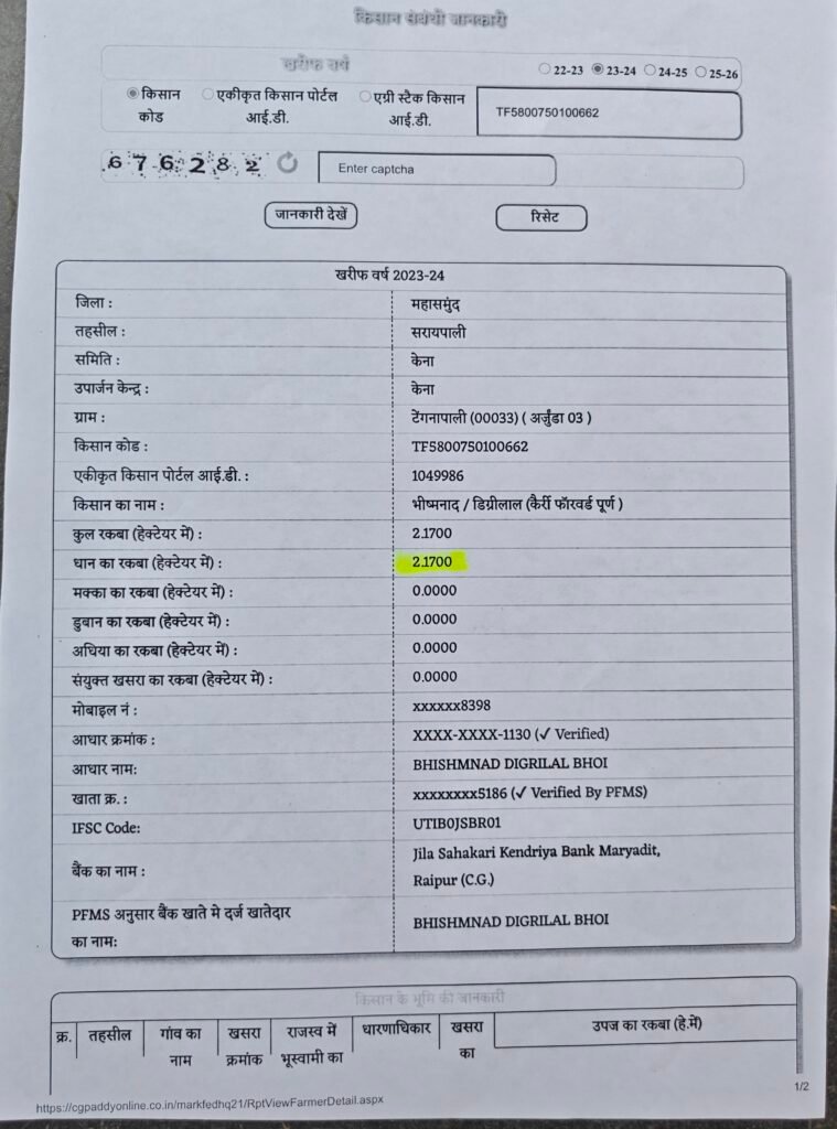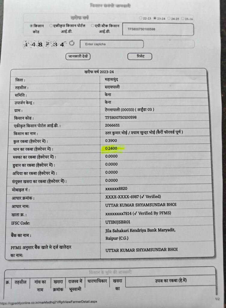 प्रकरण क्रमांक 04 – उमा / वासुदेव इनके पास कुल खेती की ज़मींन 0.1400 हेक्टेयर है यानि 35 डिसमिल है इनके नाम पर 301791 रुपये केसीसी लोन निकाला गया है।