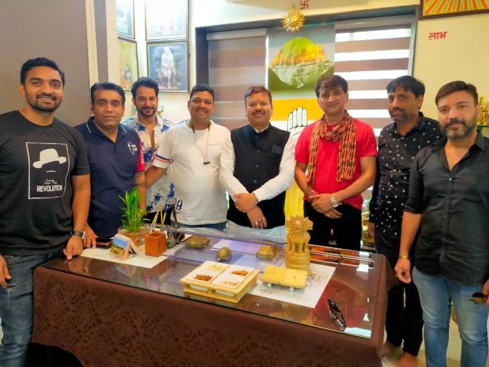 महासमुंद (छत्तीसगढ़) जिले की पुरानगरी में चल रही एक फिल्म की शूटिंग के निर्माता, निर्देशक और सह निर्माताओं ने सोमवार को संसदीय सचिव एवं विधायक विनोद सेवनलाल चंद्राकर से सौजन्य भेंट की। इस दौरान मुम्बई से पहुंचे निर्देशक एवं सह-निर्माता दीपक गर्ग के साथ इस फिल्म के कलाकार अनुज शर्मा, फिरदौस हसन, स्नेहा सिंह सिसोदिया एवं रोसलिन डिसूजा भी साथ रहे।