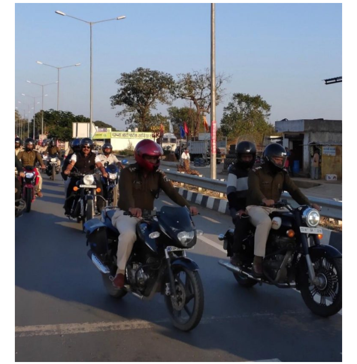 महासमुन्द (छत्तीसगढ़) पुलिस अधीक्षक महासमुंद प्रफुल्ल कुमार ठाकुर के निर्देशन एवं अति. पुलिस अधीक्षक महासमुंद श्रीमती मेघा टेम्भूरकर तथा अनुविभागीय अधिकारी पुलिस पिथौरा श्री पुपलेश कुमार के मार्गदर्शन में 30 जनवरी को थाना पटेवा क्षेत्र के ग्राम झलप में हमर पुलिस हमर संग के बैनर तले यातायात सुरक्षा माह के अवसर पर अनुविभागीय अधिकारी पुलिस पिथौरा पुपलेश कुमार, निरीक्षक मल्लिका तिवारी थाना प्रभारी पटेवा तथा स्टाफ एवँ यातायात पुलिस निरीक्षक दिपेश जयसवाल महासमुंद के द्वारा हेलमेट लगाकर यातायात जागरूकता रैली निकाली गई एवँ संयुक्त रूप से आने जाने वाले लोगों को यातायात नियमों का पालन करने के संबंध में पाम्पलेट देकर, हेलमेट पहनकर वाहन चलाने, शराब पीकर वाहन नहीं चलाने, गाड़ी का समय से बीमा कराने, दो पहिया वाहन में तीन सवारी नहीं चलने, मोड पर गाड़ी को ओवरटेक ना करने, वह अत्यधिक तेज गति से वाहन नहीं चलाने के संबंध में समझाइश दी गई एवं हेलमेट पहनकर चलने वाले नागरिकों को गुलाब का फूल देखकर उनका सम्मान किया गया। यातायात नियमों का पालन करने कारण आभार व्यक्त किया गया।