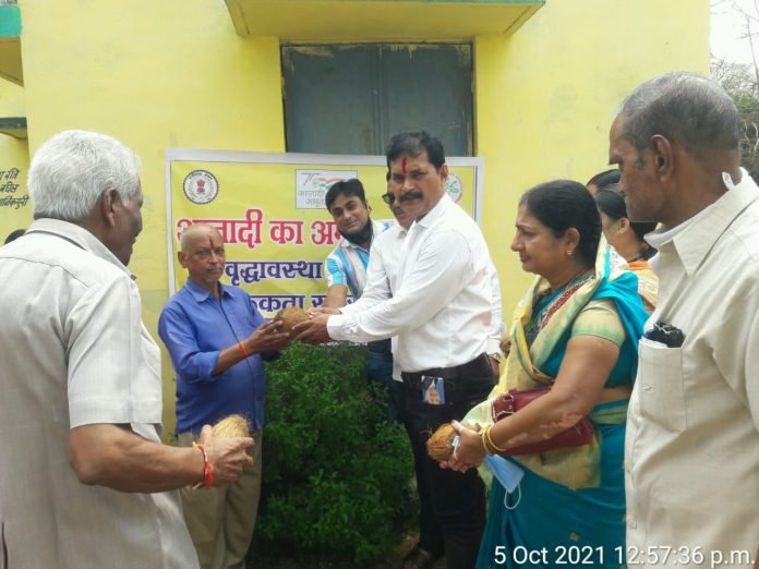 महासमुंद(छत्तीसगढ़)आजादी का अमृत महोत्सवअवसर पर आयुर्वेद विभाग महासमुन्द द्वारा वार्ड क्रमांक 26 क्लबपारा के ऑगनबाड़ी क्रमांक 01 में वरिष्ठ नागरिकों का स्वास्थ्य परीक्षण एवं सम्मान शिविर का आयोजन किया गया। जिला आयुर्वेद अधिकारी डॉ एस.आर. पटेल ने बताया कि शिविर में 37 विरष्ठ नागरिकों का रक्त शर्करा, रक्त चाप, वजन एवं अन्य जॉच कर उन्हंे स्वस्थ रहने के लिए उत्तम आहार-विहार एवं योग संबंधित पॉम्प्लेट तथा आयुष काढ़ा का वितरण किया गया। इस अवसर पर नगर पालिका अध्यक्ष श्री प्रकाश चंद्राकर, स्थानीय पार्षद श्री मनीष शर्मा ने वरिष्ठ नागरिकों को श्रीफल देकर सम्मानित किया। शिविर का आयोजन कोविड-19 के नियमों का पालन करते हुए किया गया।