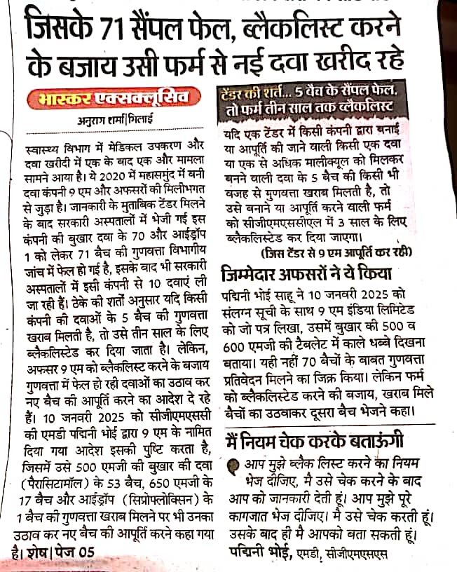 9 M इंडिया लिमिटेड बिरकोनी के, बुखार के 70 दवा सैंपल और 1 आईड्रॉप के सैम्पल फेल हुए थे उस समय भी 9 M इंडिया लिमिटेड सुर्खियों में रहा है इस बार जिला स्तरीय गठित संयुक्त टीम कई खामियां पकड़ी है।