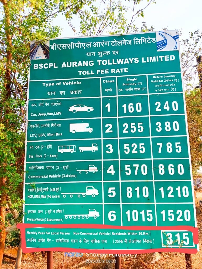 जबकि नियम में 315 रुपये का मासिक पास बनाया जाता है। सही प्रचार प्रसार नही होने से लोगो को जानकारी ही नही मिल पा रही है। BSCPL टोल टैक्स रेट बोर्ड में आखरी में ये जानकारी इतने छोटे अक्षरों में लिखा गया है जिसे शायद कई लोग पढ़ भी नही पाते होंगे।
