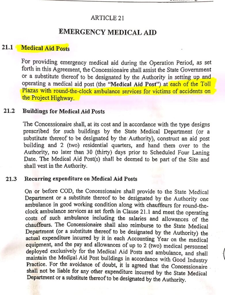 नेशनल हाइवे 53 में हादसे के बाद लगातार हो रहे मौत के जिम्मेदार भी है BSCPL कंपनी है। एग्रीमेंट [सेवा शर्तो ] के अनुसार हादसे में घायल व्यक्तियों को तुरंत प्राथमिक उपचार हेतु BSCPL कंपनी के पास ऑक्सीजन सिलेंडर युक्त ,फस्ट्रेट किट , सभी प्रकार के दवाई युक्त एम्बुलेंस, प्रशिक्षित मेडिकल स्टाफ होना चाहिए ! टोल प्लाजा में डॉक्टर और इलाज के लिए सर्व सुविधा युक्त बिल्डिंग होने चाहिए जबकि BSCPL कंपनी के ढांक टोल और सराईपाली टोल में ऐसी कोई व्यवस्था ही नहीं है।